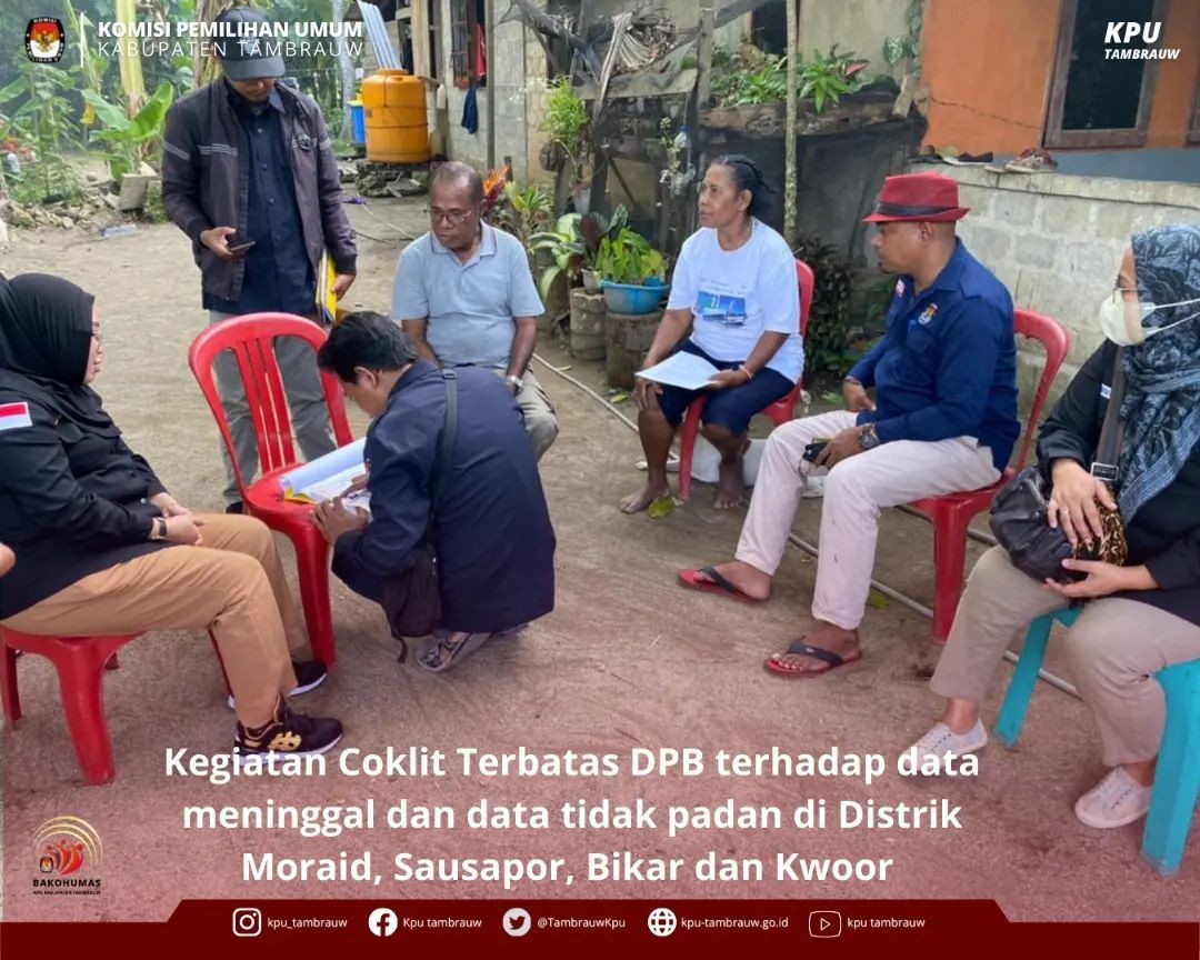 #TemanPemilih pada tanggal 15 September 2022 KPU Kabupaten Tambrauw telah melaksanakan Kegiatan Faktual Data Tidak Padan dan Data Meninggal di Distrik Moraid, Sausapor, Bikar dan Kwoor.
