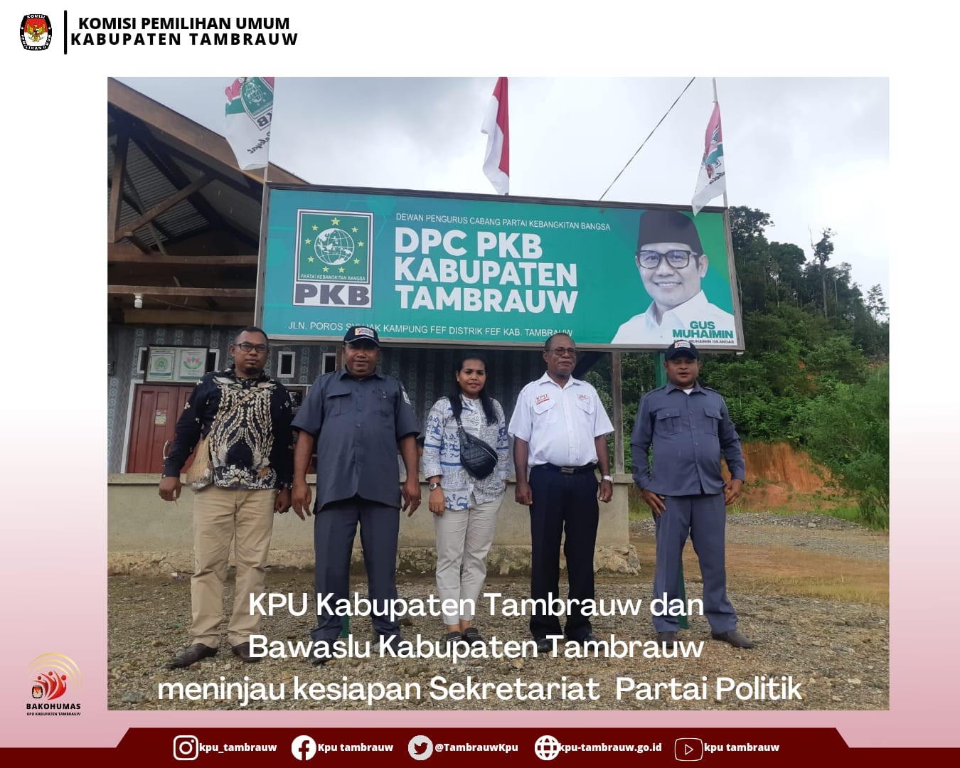 Abraham Yosias Imbiri, Ketua KPU Kabupaten Tambrauw membuka kegiatan sosialisasi sekaligus menjadi narasumber dalam kegiatan tersebut.Kegiatan tersebut dihadiri oleh Rosina Ohoiulun,Divisi Hukum; Sahrul Abdul Karim, Divisi Perencanaan, Data dan Informasi; Maklon Mainolo, Sekretaris KPU Kabupaten Tambrauw. Kegiatan tersebut juga dihadiri oleh Forkopimda Kabupaten Tambrauw dan Partai Politik di Kabupaten Tambrauw.